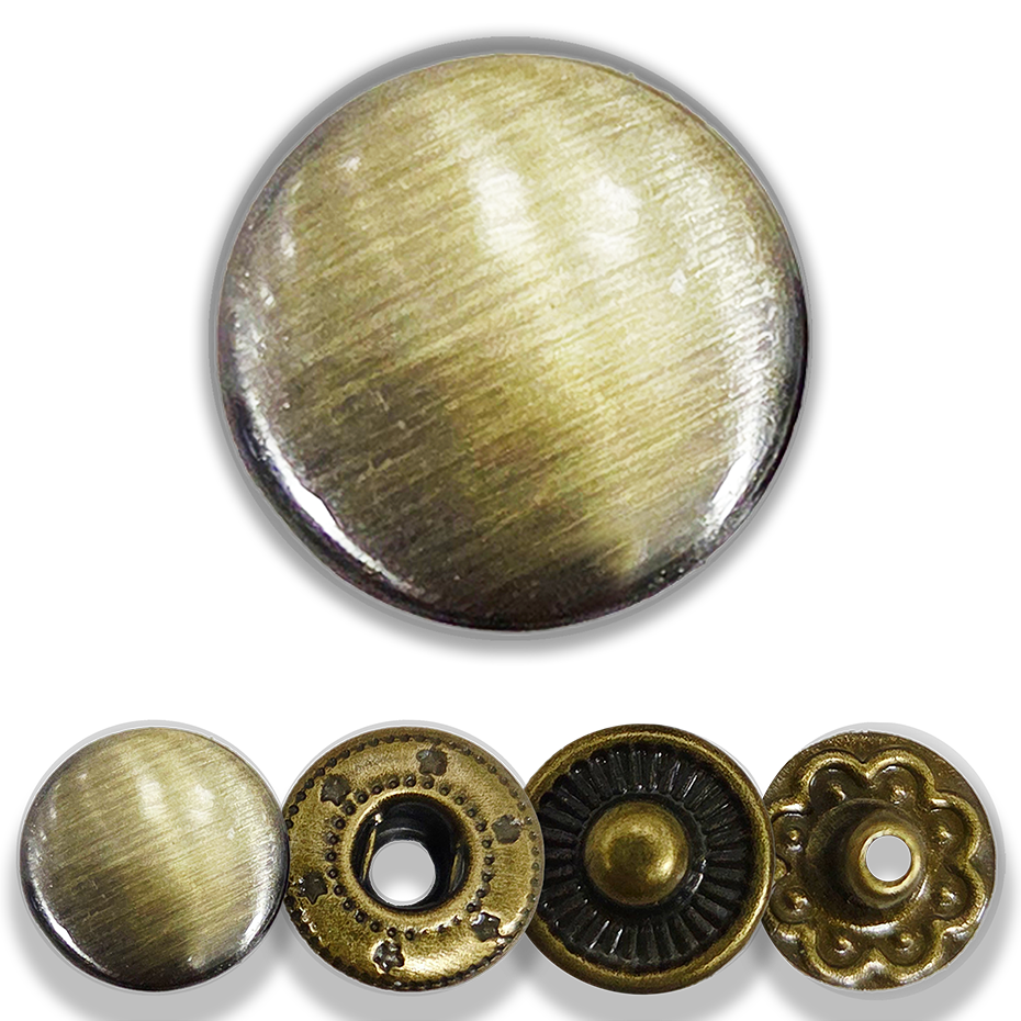 Çıtçıt, 12,5 mm, No:54, (20 takım/set) Mont, Giyim, Çanta, Deri, Fırçalı Antik, Brushed Antique